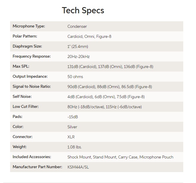 View more about Shure KSM44A Large-diaphragm Condenser Microphone on main site