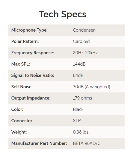 View more about Shure BETA 98AD/C Miniature Cardioid Condenser for Drum Applications on main site